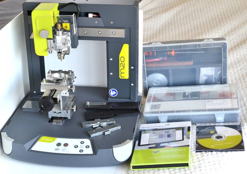 Mam do sprzedania maszynę do grawerowania M20 V3 firmy Gravograph. W komplecie jest także program Gravostyle V8 oraz program do grawerowania zdjęć. Maszyna jest w bardzo dobrym stanie. Bez uszkodzeń. Jest gotowa do pracy natychmiast. Posiada w komplecie akcesoria widoczne na zdjęciu. • Możliwość doposażenia w różne rozszerzenia w dowolnym momencie • Większa objętość: oś Z do 100 mm (nawet w przypadku dużych obiektów) • Samocentrujący imadło • Automatyczne pozycjonowanie Z • Point & Shot: Łatwe pozycjonowanie grawerowania za pomocą wskaźnika laserowego • Symulacja grawerowania za pomocą wskaźnika laserowego • Podświetlany obszar roboczy • Interfejs: USB i Bluetooth • Opcja tabletu • Grawerowanie diamentowe lub frezowanie Obszar grawerowania: 100 x 100 x 30 mm (x/y/z) Maks. Rozmiar obiektu: 180 x 110 x 100 mm Prędkość: 35 mm/s Uchwyt narzędzia: 4,36 mm Wymiary (szer. x gł. x wys.): 345 x 370 Waga: 12 kg Maszyne można sprawdzić na miejscu przed zakupem. Kontakt: Magdalena 797 108 680